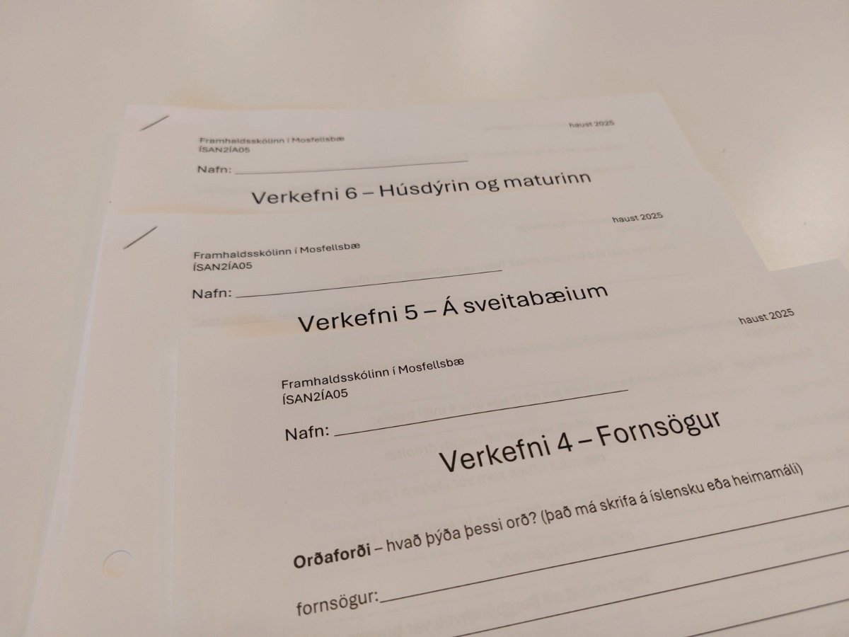 Myndin er af endurskilaverkefnum á íslenskubraut